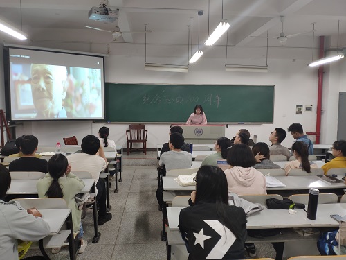 会议伊始,吕悦同学带领大家共同观赏了一部纪念五四运动一百周年的宣传片:短片以时间为轴线展开,1919年巴黎和会上中国外交失败,青年学生担负起反对外国侵略的重担,从而掀起全国爱国主义运动,中国走上了救国图存的道路;1921年中国共产党成立,成为中华民族复兴征程中的一大里程碑,从此中国革命的面貌焕然一新;1949年中华人民共和国成立,彻底终结了中华民族100多年来被侵略、被奴役的屈辱历史;1978年改革开放到现在,中国人民解决了温饱问题迈入了小康社会。通过纪录片,让同学们认识到了如今幸福的生活是老一辈的革命家用鲜血和生命换回来的,应该更加珍惜现在拥有的一切。