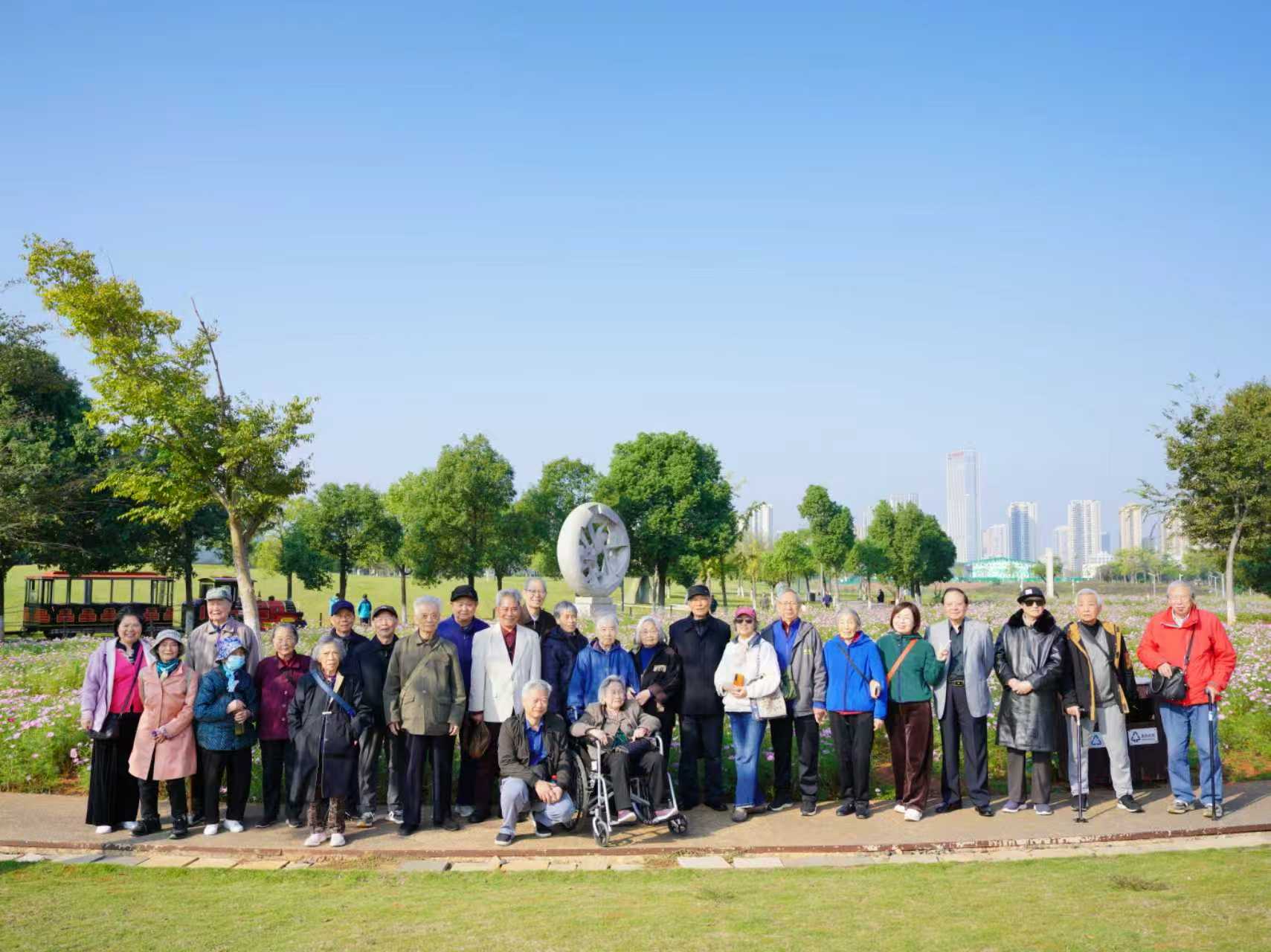 退休党支部在长沙市洋湖垸湿地公园组织开展"化韵金秋,重阳雅聚"主题秋游活动,切实为离退休教职工营造欢乐祥和的节日氛围。活动深入贯彻落实敬老爱老传统美德,有效丰富老年人精神文化生活,促进代际情感交流,取得良好成效。