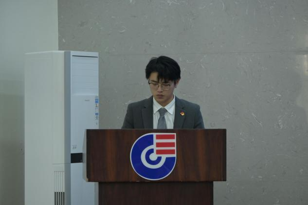 致辞结束后,活动进入双创logo颁奖环节。其中,一等奖作品由张欣粤同学设计,该logo以双C蓝色环形构成镂空烧瓶,瓶中浪花抽象为“E”字与“创”字,既融合化学实验仪器特质,又体现“循环融合、迭代创新”的学科理念,赢得全场好评。随后的颁奖环节中,刘展鹏(三等奖,蒋晓洁老师颁奖)、刘艺文(二等奖,王少飞主任颁奖)、张欣粤(一等奖,李永军院长颁奖)依次登台领奖,现场掌声不断。接着,张欣粤同学分享了她的创作思路,让在场师生对“学科与创新的结合”的理念有了更直观的理解。