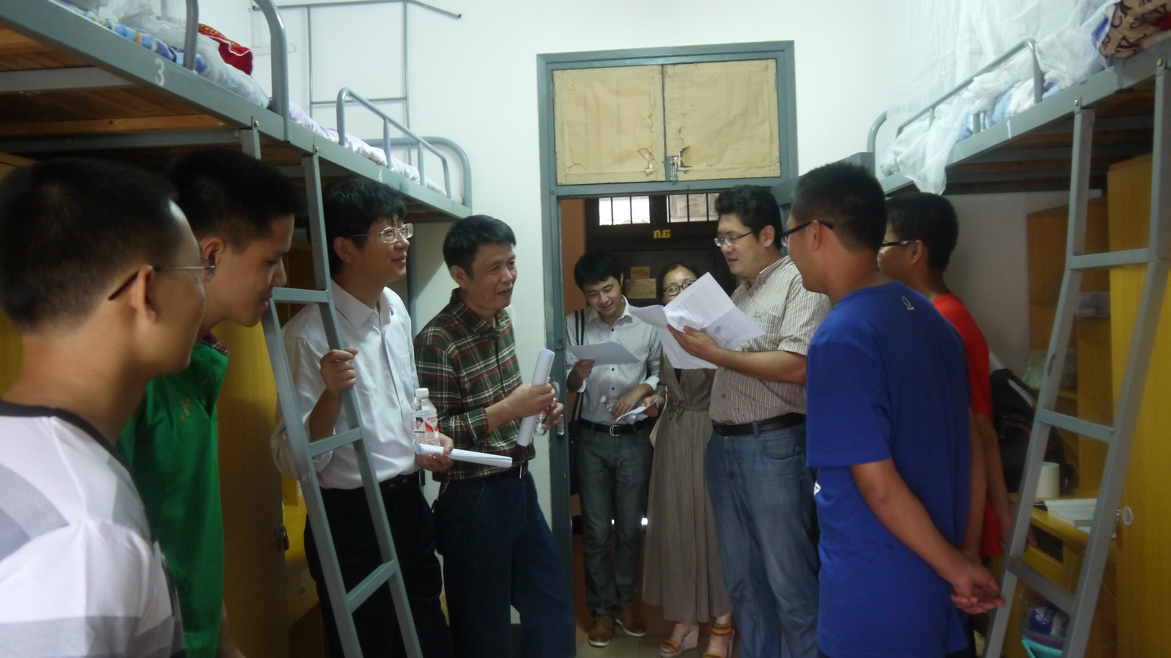 党委副书记陈义红老师等领导一行分成两组分别对男生和女生寝室进行走访慰问。此次陪同领导看望新生的还有学工办主任曾芳老师,分团委书记李辰老师,12级辅导员陈晓晖老师以及各班新生班主任。