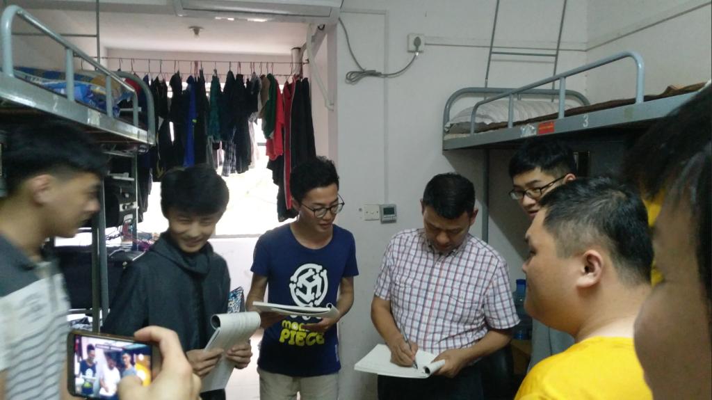 等高校,该寝室同学为谭校长送上了鲜花,其他寝室的同学听闻谭校长来到宿舍,全部来到该寝室,争先恐后让谭校长在自己的毕业纪念册签上祝福语和名字。走下楼时,谭校长看到日韩无码