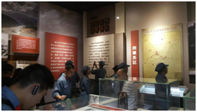 随后我们进入遵义会议陈列馆,一进大厅,就能看到20位参加遵义会议的革命先驱的雕像。陈列馆内部展览主要分为三部分:战略转移,开始长征;遵义会议,伟大转折;转战贵州,出奇制胜。第一部分图文并茂地展示了自1931年九一八事变后,中国共产党面对日益加重的民族危机,高举抗日救亡的旗帜,然而,国民党却坚持“攘外必先安内”的政策,调兵百万“围剿”各革命根据地。而中央红军的 “左”倾教条主义的错误使中央革命根据地第五次反“围剿”失败,中共中央和中央红军实行战略大转移踏上长征路,突破国民党军设置的四道封锁线。第二部分完整地展示了遵义会议前后的历史,使观众能了解这一伟大转折的全过程。第三部分由创建苏区、四渡赤水、兵临贵阳组成,介绍了中央红军转战贵州期间,毛泽东等党和红军领导人以高超的军事指挥艺术和战略战术,指挥中央红军突破国民党军的重重包围,取得了战略转移中具有决定意义的胜利。