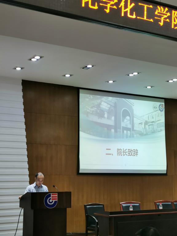 党委书记王玉枝教授、院长张晓兵教授、党委副书记范媛吉老师、副院长李永军教授、梁志武教授、崔坤在老师,院长助理汪秋安老师、院长助理赵敬哲老师,化工系主任罗潇老师、实验中心主任郭栋才教授以及2019级全体班主任和学工办全体老师,19级新生辅导员夏忠诚老师主持此次典礼。
